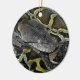 Burmese Pythons are dark-colored snakes with many brown blotches bordered in black down the back