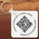 Double sided keychain with your QR code and custom text on a white or custom colour background. Change fonts and font colours, move and resize elements with the design tool.