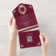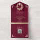 QR Code Baroque Burgundy Gold Wedding All In One Invitation