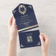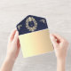 Elegant and luxurious, this navy blue and gold baroque all-in-one wedding invitation is designed for couples who want timeless sophistication with modern convenience. The ornate golden frame monogram on the front adds a royal touch, while the integrated RSVP card includes a scannable QR code for quick online responses and access to your wedding website. This envelope-style invitation folds neatly for mailing, featuring a matching navy and gold design with return address printing. A perfect blend of vintage grandeur and contemporary functionality, ideal for classic, luxury, and formal weddings.