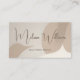 This artistic business card features beige neutral tones abstract art. The script emphasizes the first letters of your name so it resembles a business card with initials. Templates for your name, title, phone number, mail and website address, QR-code to your website or social media account. Perfect for interior designers, skincare specialists, estheticians, graphic designers and landscaping.