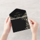 Elegant black and gold floral all-in-one wedding invitation with QR code RSVP. Features a romantic gold botanical design on a bold black background, with a matching RSVP section on the back. The convenient built-in QR code makes it easy for guests to RSVP online and access your wedding website. Perfect for modern, classy, and evening weddings. Eco-friendly format without separate envelopes. Customize with your details for a stylish and practical wedding invite.