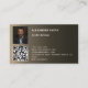 A modern, simple and elegant business card design that features a black and gold circle and a template for a QR code. This photo business card is perfect for credit professionals in the financial industry: credit advisors and consultants, credit repair specialists etc.