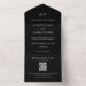 This classic black monogram all in one wedding invitation blends modern style with timeless elegance. Featuring a sleek black background and personalized monogram, it offers a simple yet sophisticated way to announce your big day. The all-in-one format includes the invitation along with a QR code for RSVPs and event details, making it both practical and stylish.