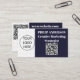 This striking dark blue and white business card combines elegance and functionality, designed to make a lasting impression in any professional setting. The front showcases a sleek QR code, strategically placed for easy scanning, offering instant access to your website, portfolio, or custom link. Your name and job title are featured in crisp white text, balanced with a contemporary font that conveys both clarity and sophistication. The logo is carefully positioned to enhance brand recognition, subtly reinforcing your identity without overpowering the design.