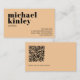 Simple elegant typography plain boho peach beige and black trendy networking QR code business card. Suitable for a teacher, writer, designer, photographer, consultant, makeup artist, hairstylist, or any other independent professional. ++++++++++++ Easy to personalize with your details and QR code (automatically generated by simply inserting your URL link).