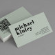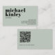 Simple elegant typography plain sage green and black trendy networking QR code business card. Suitable for a teacher, writer, designer, photographer, consultant, makeup artist, hairstylist, or any other independent professional. ++++++++++++ Easy to personalize with your details and QR code (automatically generated by simply inserting your URL link).