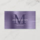 QR Code Brushed Metal Midnight Purple Monogram Business Card
