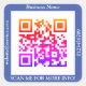 Personalize this sticker with a b/w QR Code to get this colour (filter has already been applied). Business Name, website and code number are in white text with medium blue border.