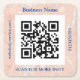 Personalize with your QR Code in any colour, but be sure it is dark enough to scan. Business Name, website and number code are in blue text with Rose Gold Marble border.