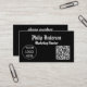 With its matte black finish and elegant white text, this business card exudes sophistication and professionalism. Optional enhancements, such as embossed logos or glossy QR codes, can further elevate its visual appeal, making it a standout choice for any industry.