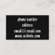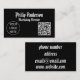 The back of the card is efficiently organized, presenting your phone number, email address, physical address, and website in a clear and structured format. The contrast of white text against the black background ensures all details are easy to read at a glance.