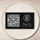 This modern black QR Code and company logo business card is easily customizable with your QR code, logo, and contact information.