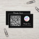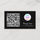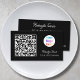 This modern black QR Code and company logo business card is easily customizable with your QR code, logo, and contact information.