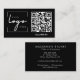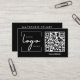 QR Code Business Logo Black Modern Professional Business Card. Elevate your professional presence with our Customizable Business Card in black and white, designed for modern professionals who value simplicity and functionality. This sleek, minimalistic card with a chic black background showcases your contact information and incorporates a QR code for seamless connectivity to your online profiles or portfolio.