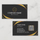 Personalized modern black and gold business card design features your business logo and custom QR code on the back. Add your name, company name/title, logo (photo or other graphic) and contact information. You can customize the text size, font and colour to suit your own personal preference. Input a URL address to create a scannable QR code linked to your website, social media profiles, or any other platform.