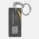 Personalized modern black and gold keychain design features your business logo and custom QR code. Add your company name/title and logo (photo or other graphic). You can customize the text size, font and colour to suit your own personal preference. Input a URL address to create a scannable QR code linked to your website, social media profiles, or any other platform.
