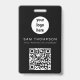 A modern minimalist personalized business badge with business logo and QR code. Personalize with your logo, QR code and details to create your own unique elegant black and white business badge. Customize even further with a custom colour background or font.