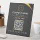 Personalized modern black and gold pedestal sign design features your business logo and custom QR code. Add your company name/title, logo (photo or other graphic) and other information. You can customize the text size, font and colour to suit your own personal preference. Input a URL address to create a scannable QR code linked to your website, social media profiles, or any other platform.