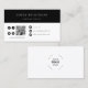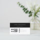 Simple custom minimalistic QR Code and company logo business card in a modern minimal black and white style. The template can easily be edited with your QR code, logo, socials and contact information.