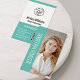 Make a memorable first impression with this modern and dynamic business card design. The bold vertical strip of vibrant teal on the front elegantly frames your name, while a striking photo of you captures attention and adds a personal touch. The reverse side features your company logo, name, title, and all essential contact details, including a QR code, presented in a clean and organized layout, ensuring both professionalism and approachability.