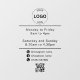 A simple custom logo business opening hours, template in a modern minimalist style . This versatile template allows you to easily design a custom opening times list for your store, salon, restaurant, cafe or any other business. Need help? Feel free to contact me using the message button. I am happy to help with your personalization, additional items or custom orders.
