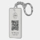 A simple custom grey business QR code keychain template in a modern minimalist style which can be easily updated with your company logo, QR code and custom text, eg. scan me to... #QRcode #logo #keychain #business