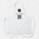 A modern minimalist personalized business apron with business logo and QR code. Personalize with your logo, QR code and details to create your own unique elegant black and white business design. Customize even further with a custom colour background or font.