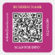 Personalize this sticker and generate your QR Code in any colour, but be sure it is dark enough to scan. Business Name, website and phone are in white and yellow text on maroon.