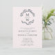 All in One QR Code RSVP Charcoal on Light Blush Pink Monogram Botanical Wreath Wedding Invitation... The front of our trendy minimalist wedding invitation features a charcoal-coloured leafy botanical wreath displaying the bride's and groom's monogram initials above personalized invitation text in charcoal serif and sans serif typography on a delicate light blush background. The blush pink back of the invitation also displays your wedding website QR code as well as the website's URL itself allowing your invitees to easily RSVP online and view all of the details normally sent in a wedding packet. The example QR code and all example text can be easily revised with your own information on the personalization template.