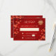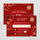 Red cherry blossoms on a shimmering red background and a gold double happiness symbol. RSVP Chinese Wedding Card. On the backside is a scannable qr code for your wedding website.