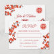 Red cherry blossoms and a red double happiness symbol on a white background. RSVP Chinese Wedding Card. On the backside is a scannable qr code for your wedding website.