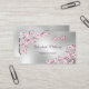 QR Code | Cherry Blossoms Pink Silver Business Card