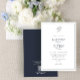 QR Code Classic Navy Blue Script Monogram Wedding Invitation