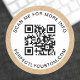 Round, white stickers with your QR code and custom text and a printed Kraft paper look border. Change fonts and font colours, move and resize elements with the design tool. Follow us on Facebook: @businessstationery for more products, news, sales and more.