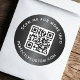 Round stickers with your QR code and custom text on a dark grey gradient background. Change fonts and font colours, move and resize elements with the design tool. Follow us on Facebook: @businessstationery for more products, news, sales and more.