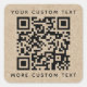 Square stickers with your QR code and custom text, one line at the top and one at the bottom on a printed image Kraft paper look background. Change fonts and font colours, move and resize elements with the design tool. Follow us on Facebook: @businessstationery or Instagram: @business.perfectlycustom for more products, news, sales and more.