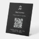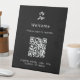A classic black background, white coloured text. With the text: Welcome. Personalize and add your business logo, QR code and text.
