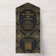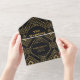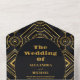 QR Code Diamond Black and Gold Art Deco Wedding All In One Invitation