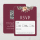 QR Code elegant floral burgundy RSVP Card