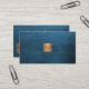 QR code elegant luxury blue leather gold monogram Business Card