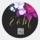 QR Code Elegant Purple Rose Monogram Wedding Cl Classic Round Sticker