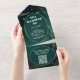 QR Code Emerald Green Gold Celestial Wedding All In One Invitation