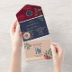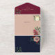 Elegant all-in-one fall wedding invitation in burgundy and navy with romantic blush flowers and greenery. This envelope-free seal and send invite includes a convenient QR code for RSVP and a wedding website link for guest information. Perfect for autumn weddings, this design combines seasonal florals with modern functionality. Guests can reply quickly by scanning the QR code, while you enjoy a stylish and practical invitation suite. A9 envelopes are required for mailing.