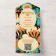 QR Code Floral Groovy Retro Wedding All In One Invitation