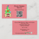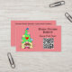 QR Code Gnome Hometown Bakery Business Card. Funny baker gnome with a macaron hat and holding a piece of cake. A fun bakery business card. Personalize this template with your information. Customize it further for more changes. Four social media symbols are on the back of the card. When customizing it, any of the images can be taken off and moved around.