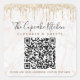 QR Code Gold Glitter Marble Drips Business Name Square Sticker