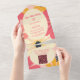 QR Code Groovy Retro Pink & Gold Wedding All In One Invitation