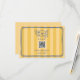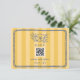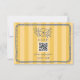 Mariage RSVP avec cadre bleu et illustration florale sur l'arrière - plan rayé jaune avec texte rouge à l'avant et à l'arrière. Personnalisez le texte et le code QR.