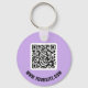 Custom QR code keychain. Custom background colour. Custom text on both sides.